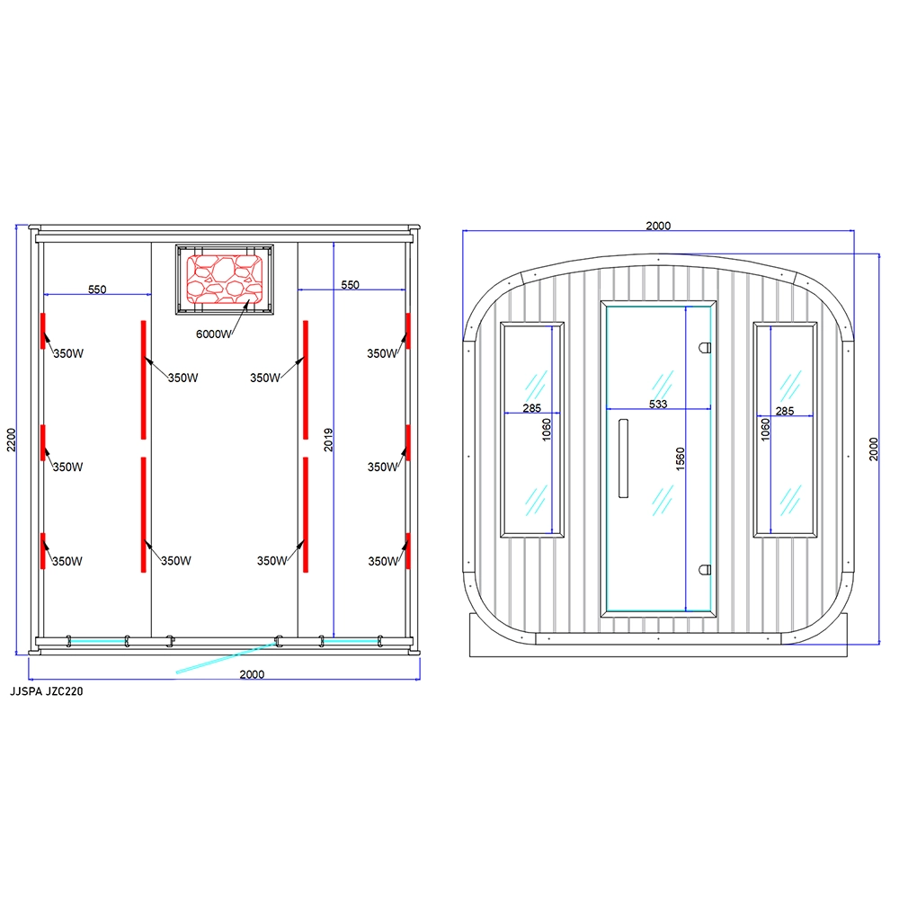 All’interno della sauna da esterno JZC220 troverai una serie di funzionalità attentamente curate, progettate per offrire un incontro terapeutico completo. Ciò include elementi riscaldanti di alta qualità, pannelli di controllo digitali, sedili dal design ergonomico, materiali di prima qualità e un’illuminazione ambientale rilassante. Insieme, questi elementi si combinano per creare un’esperienza rigenerante e nutriente che alimenta il tuo benessere generale.